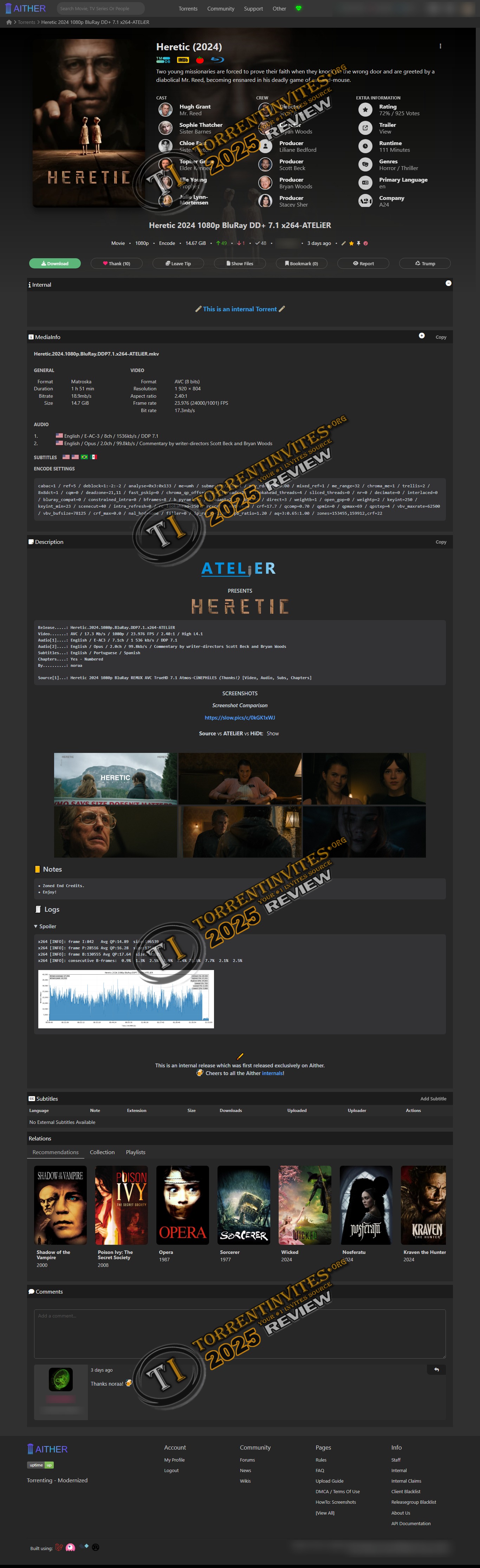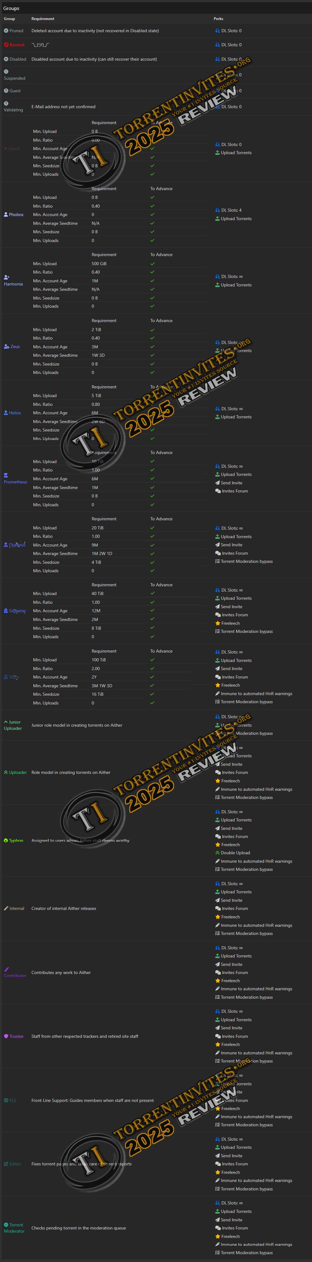 Tracker DescriptionAither is UNIT3D based general tracker for movies, TV shows, Sports & music.It is one of the most underrated tracker imo. They have plenty of great Internals groups like Kitsune, ATELiER, ARTiCUN0, MainFrame, 𝓜𝓾𝔃𝓲𝓮𝓴, WiTCHCRAFT, etc. Thus they have a lot of unique content that either can't be found anywhere else or originate here and then gets distributed across other trackers.
