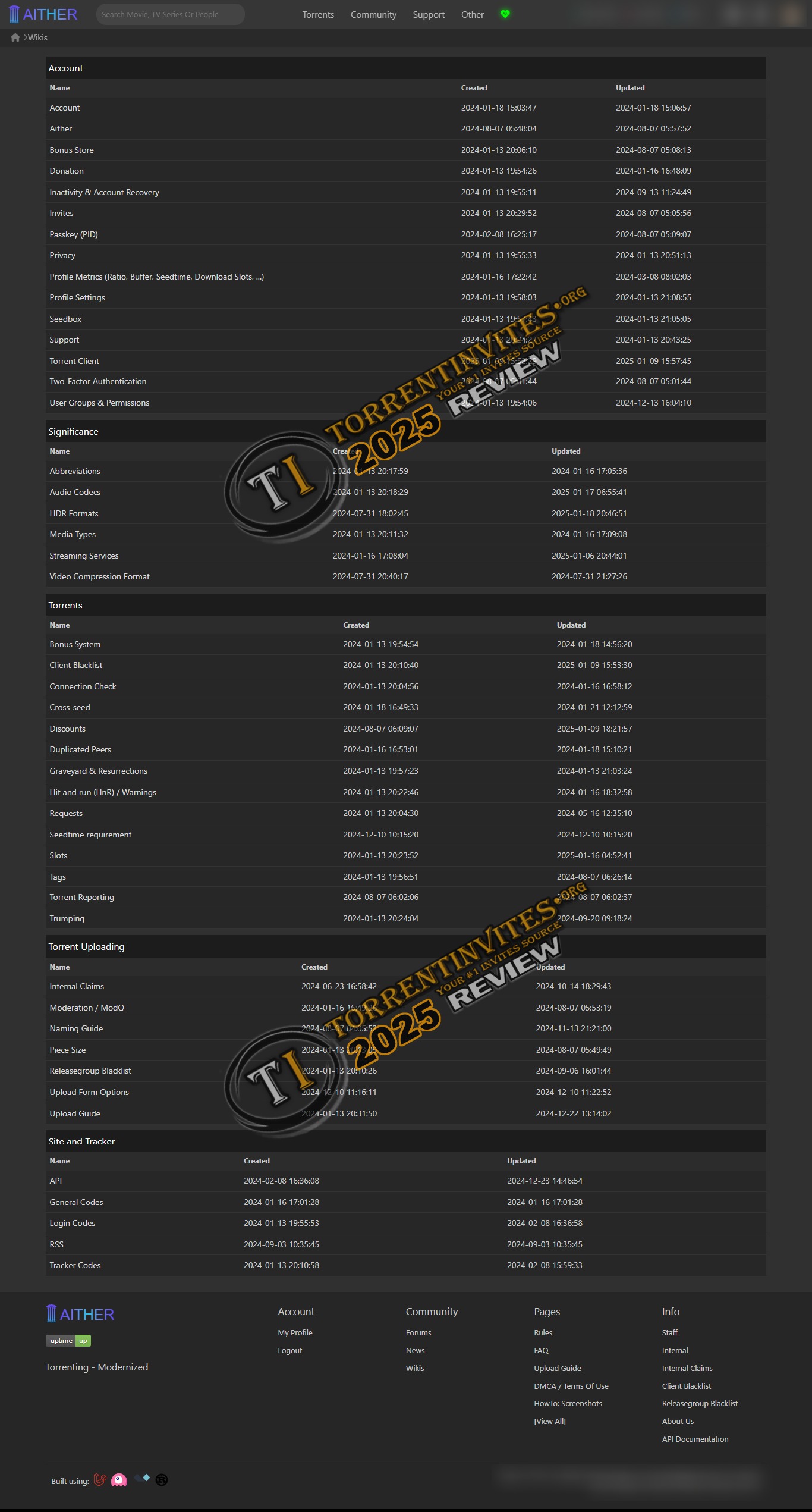 Heading InformationTracker Name Aither Tracker Acronyms AiTr Tracker URL https://aither.cc/ Tracker Genre General Tracker Type Ratio Besed Mantaining Ratio Easy / Medium Seedbonus Available Joining Method Invite Only Tracker Age 4+ Years Site UI Language English Codebase Unit3D Banned Countries None Contact Info IRC