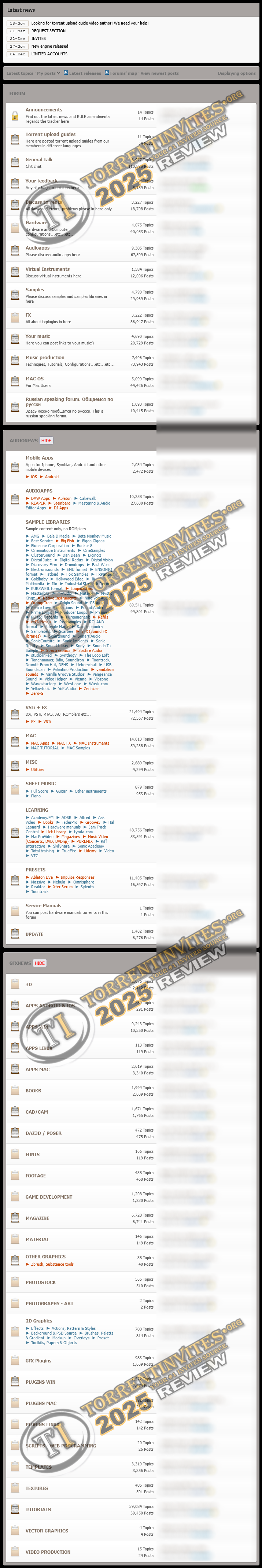 AudioNews is a torrent tracker designed for music producers rather than music listeners( almost last year GFXNEWS the sister site of Audionews merged with AN and IS NOW PART OF AUDIONEWS it's is focussed on graphics / video / etc. Apps, stock footage, etc stuff like that)