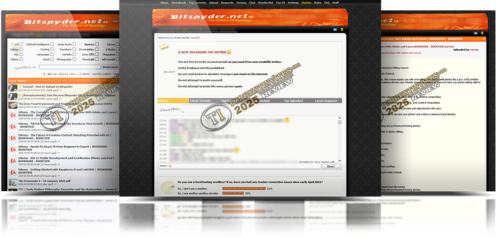 Bitspyder is an e-learning tracker whom first opened their doors in March 2006. The staff pride themselves on running a family-friendly website meaning they do not allow explicit adult content or discussion anywhere on the tracker.