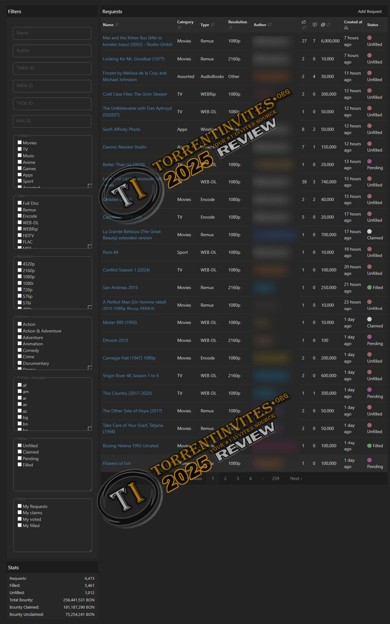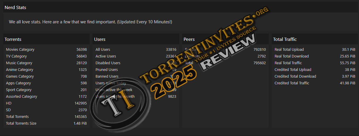 The site have recruited a few uploaders who exclusively uploads remuxes. Scene is uploaded unpacked and hosted as a single file. Anyone is allowed to uplaod here. They have around 145k Total Torrents and 23k active users. According to their rules page there are no minimum seedtime requirements. Just maintain a ratio above 0.7. However, you must seed your uploads for at least 168 hours (7 days) or until there is 3 or more seeds. They also have bonus point active like other Unit3D trackers. Overall its a nice traceker to have if you are after High Quality content with excellant pretime.
