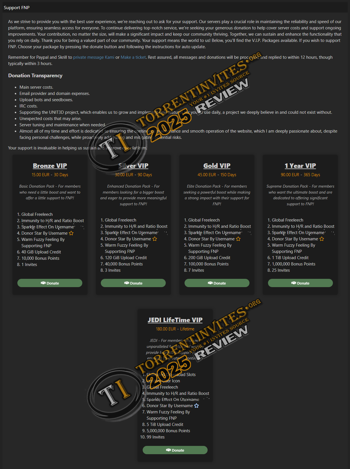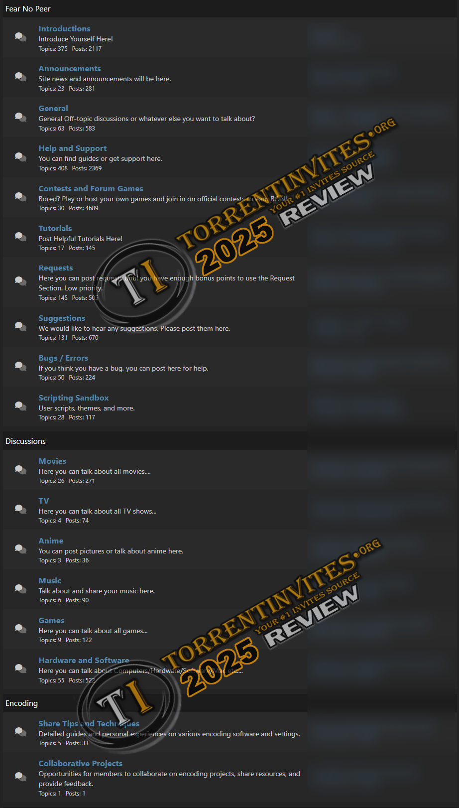 Heading InformationTracker Name FearNoPeer Tracker Acronyms FNP Tracker URL https://fearnopeer.com/ Tracker Genre General Tracker Type Ratio Besed Mantaining Ratio Easy Seedbonus Available Joining Method Invite Only Tracker Age 2 Years Site UI Language English Codebase Unit3D Banned Countries None Contact Info IRC