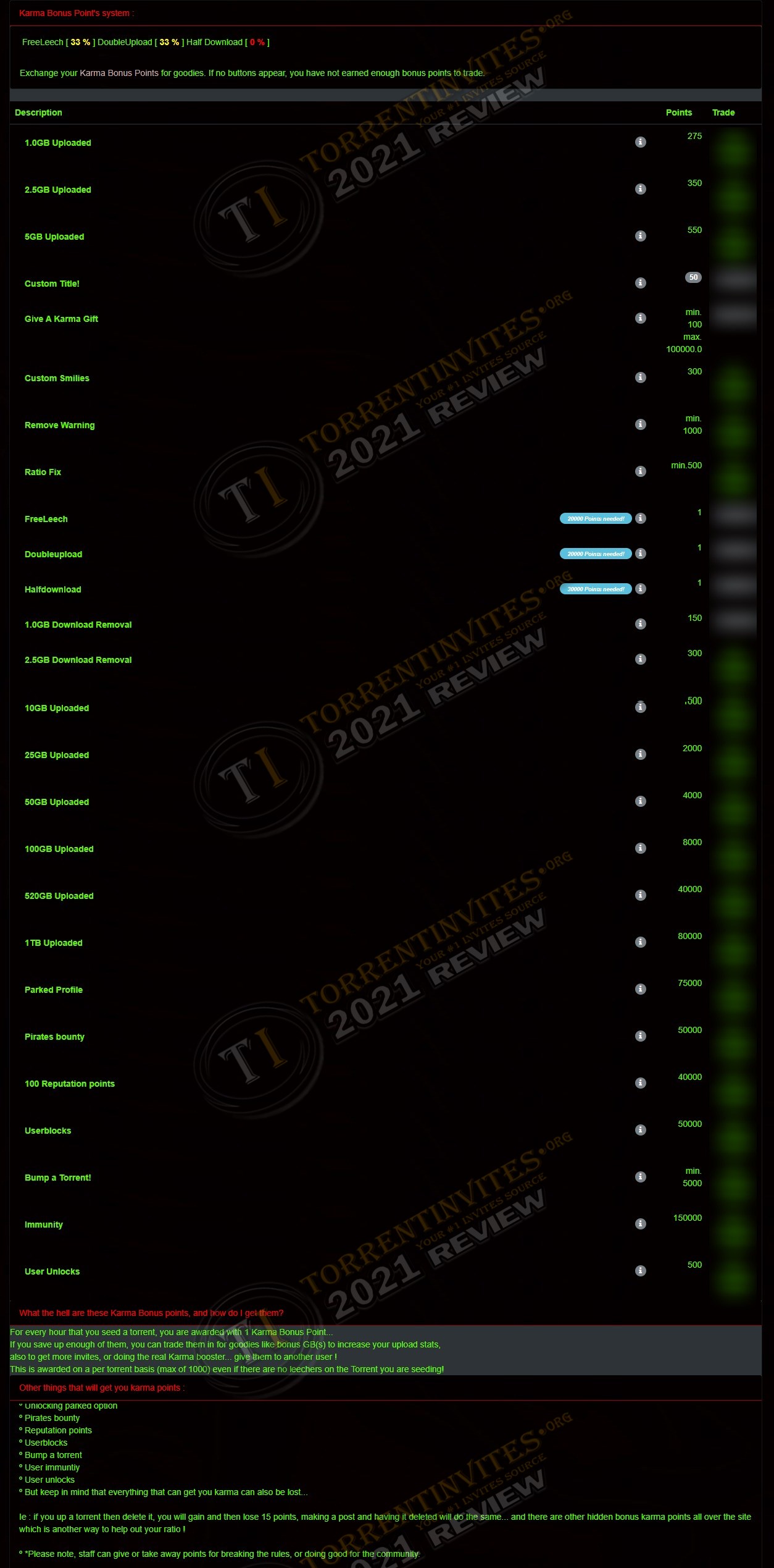 They have Bonus system,for every hour that you seed a torrent, you are awarded with 1 Karma Bonus Point,