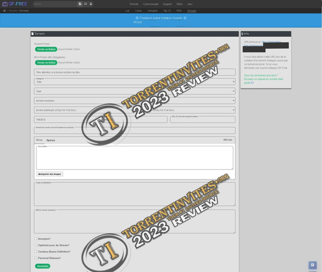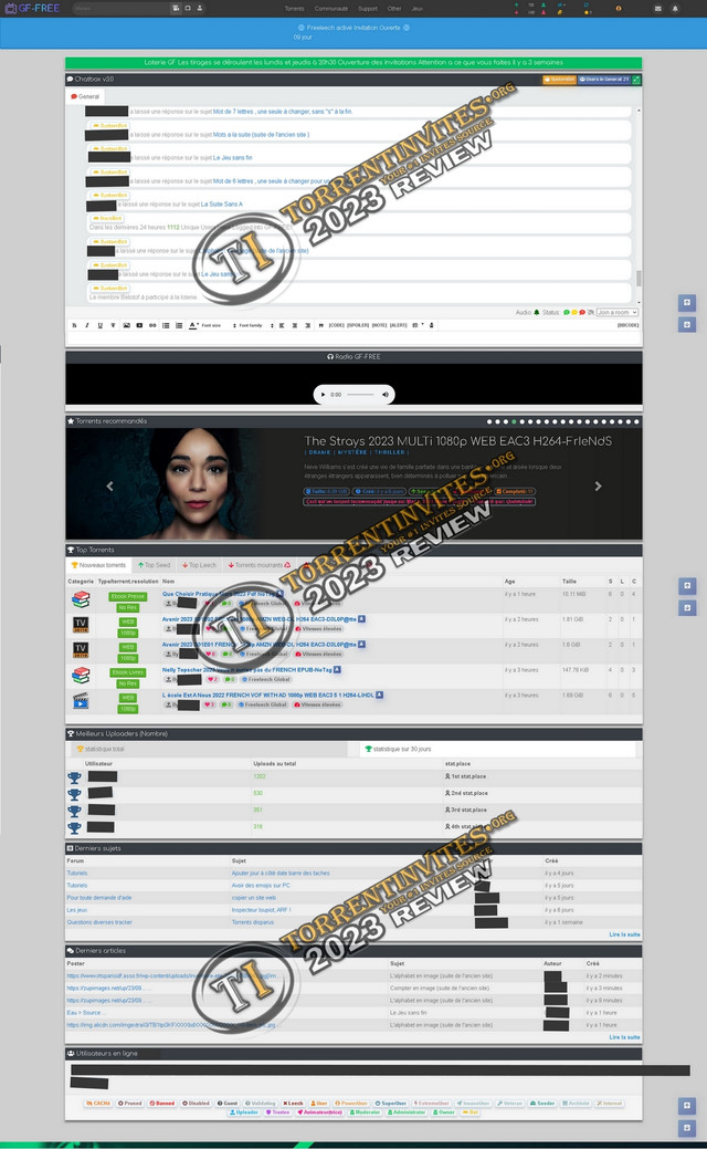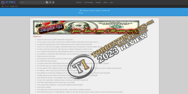 Generation Free is a French private tracker born no later than 2017. It is a general tracker with movies, tv shows, books, software, ...