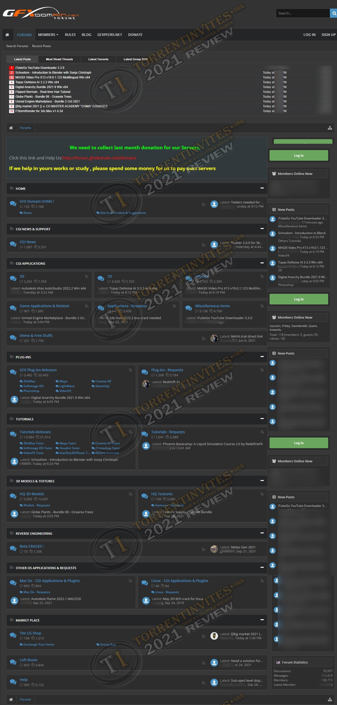 With database of about 55K users and 55K torrents,GFXPeers is dedicated to 3D Applications, Plug-ins, 3D Graphics, Design, 3D-modeling, Architecture.