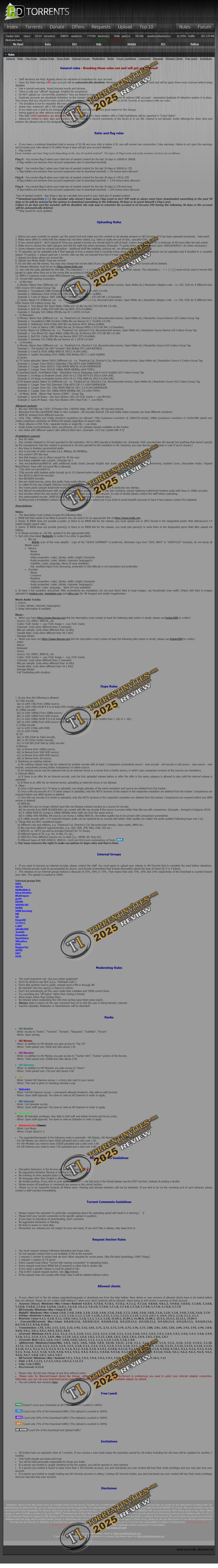 Heading InformationTracker Name HD-Torrents Tracker Acronyms HDT Tracker URL https://hd-torrents.org/ Tracker Genre HD Tracker Type Ratio Besed Mantaining Ratio Medium Seedbonus Available Joining Method Invite Only Tracker Age 25 Years (Almost) Site UI Language English Codebase XBTIT Banned Countries None Contact Info Unknown