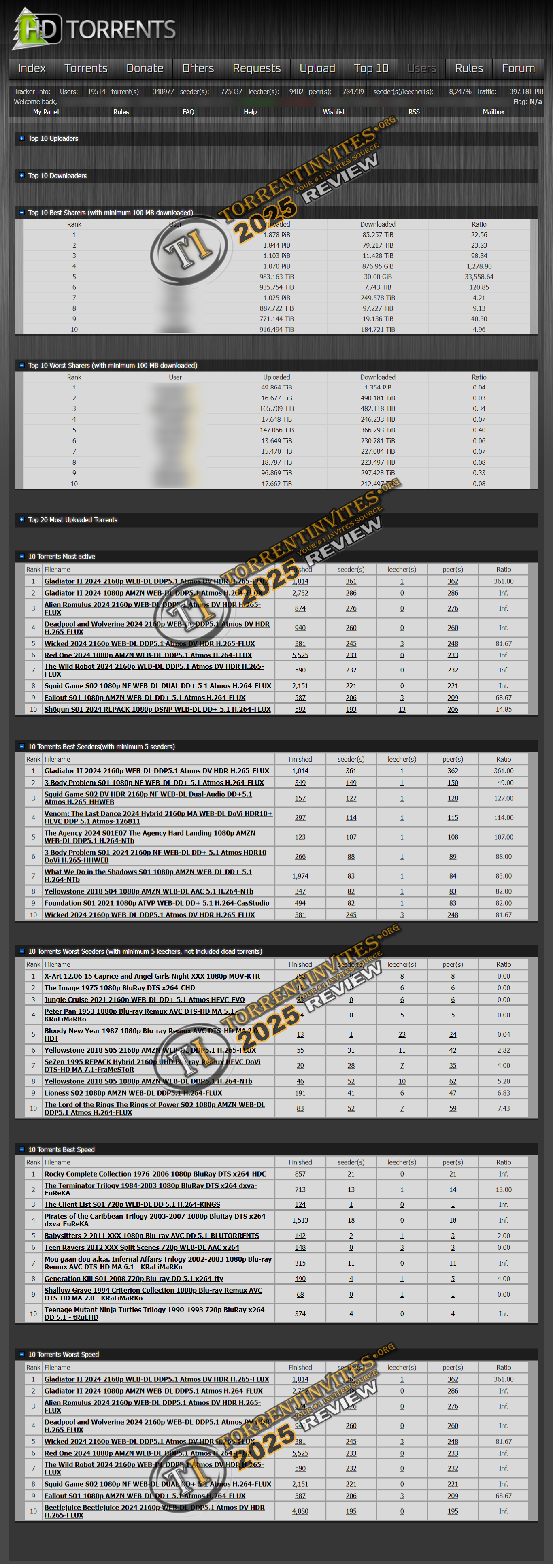 They have currently around 350k+ torrents and 20k users (approximately). The seed quality and download speed is very good. You have many dedicated seeders that are seeding countless big & old files like FULL-BLURAY for years and they still continue to do it. Tracker Codebase: XBTIT. The tracker UI is like old school, but not the worst I would say.