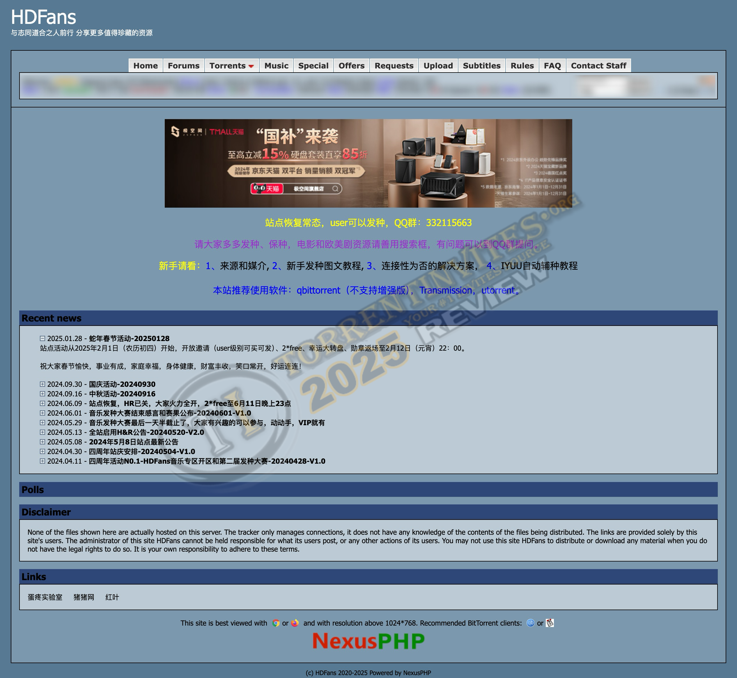 HDFans is a privateChinese tracker for HD releases based on Nexus, with database of about 130k torrents. Contents of others Chinese releases/trackers are available. They have internal encoders (HDFans). Users can upload torrents directly without going through upload section. It is ratio based.Minumum ratio or seed duration are NOT specified. Bonus system is available like other Chinese trackers. Forum is not very active. You can use chrome google translator for better navigation