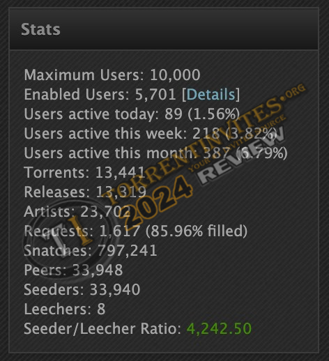 IT has database of about 5.7K users and 13.4K torrents, which is considered small