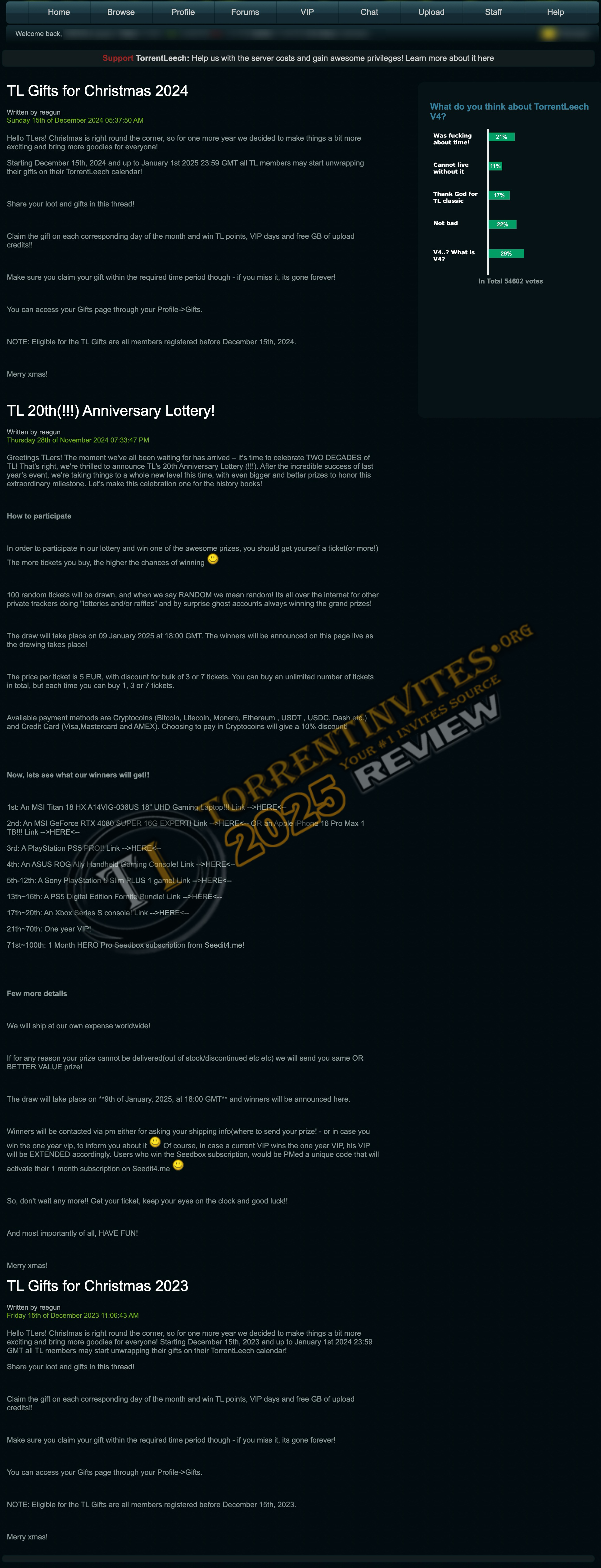 Tracker Name TorrentLeech Tracker URL https://torrentleech.org/ Tracker Genre General Tracker Type Ratio based Tracker Signup Invite only Bonus System Yes Seed Difficulty Easy Tracker IRC irc.torrentleech.org