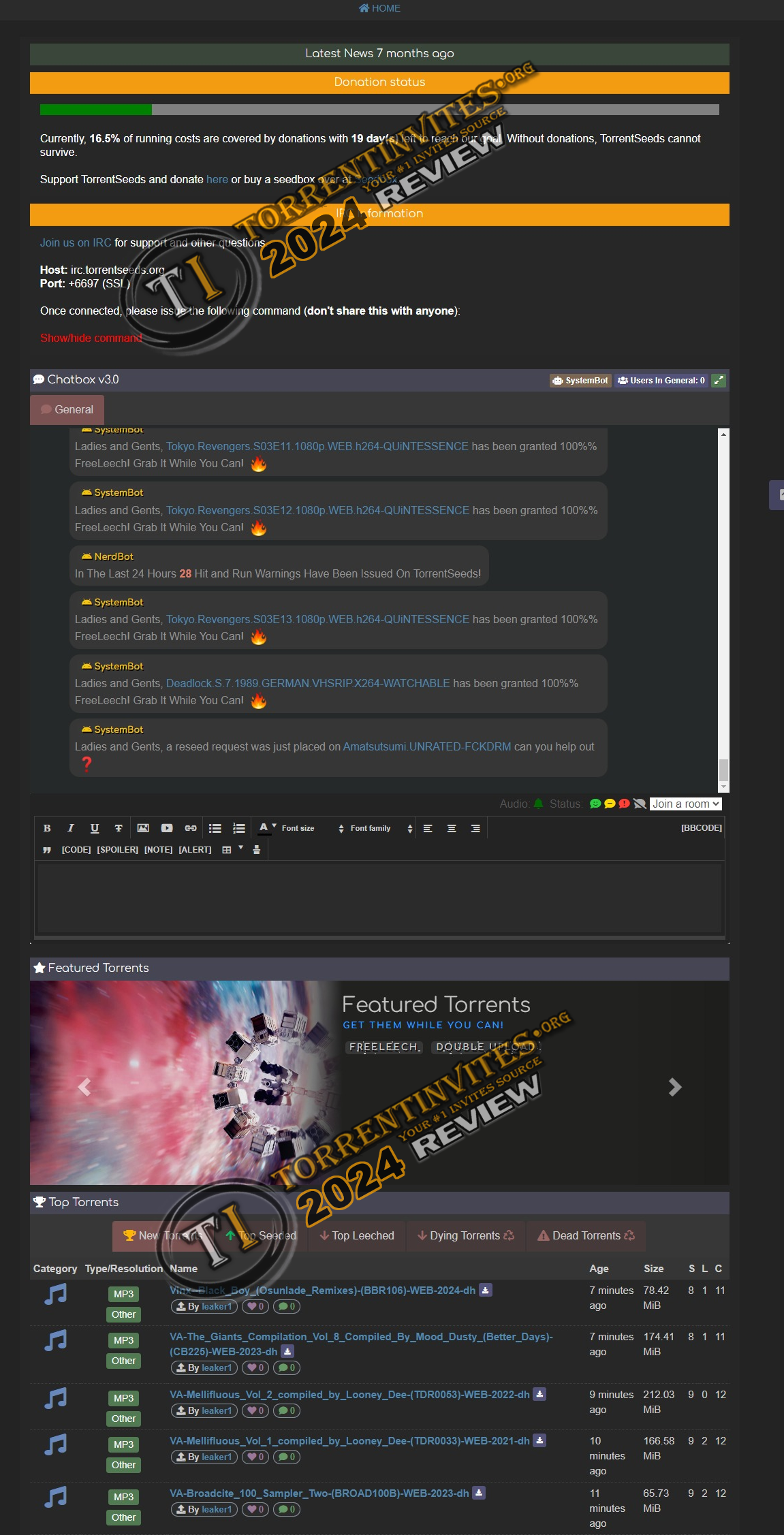 irc.torrentseeds.org, Port: 6697 (SSL only)