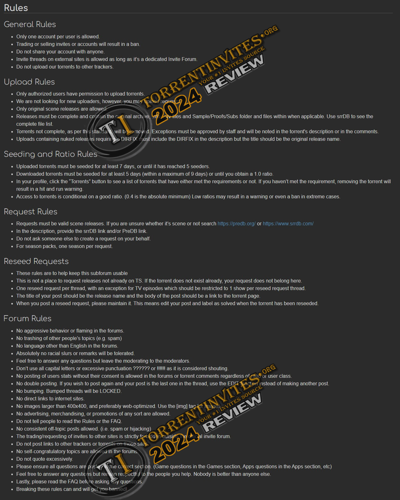 seed all torrents for a minimum of 5 days (within a maximum of 9 days) or until you hit a 1:1