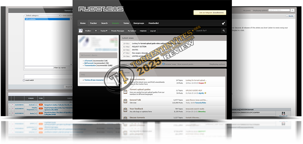 AudioNews is a torrent tracker designed for music producers rather than music listeners( almost last year GFXNEWS the sister site of Audionews merged with AN and IS NOW PART OF AUDIONEWS it's is focussed on graphics / video / etc. Apps, stock footage, etc stuff like that)