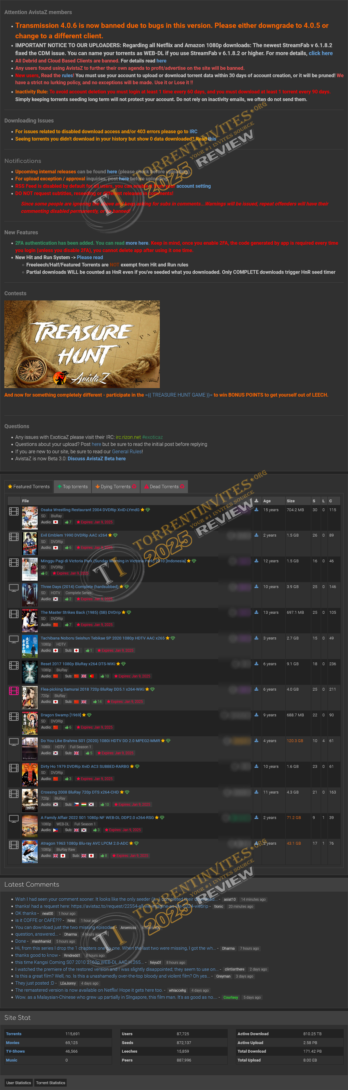 AvistaZ is a tracker for Asian contents except asian porn. Only media produced in South, Southeast, East Asian countries like Korean, Japanese, Chinese, Filipino, Thai, India are allowed here. Avistaz is a sister tracker of PrivateHD, Cinemaz, Exoticaz.