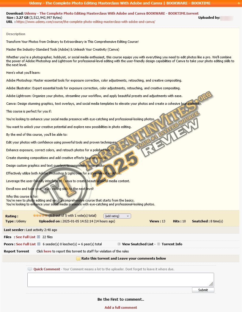 Bitspyder is an e-learning tracker whom first opened their doors in March 2006. The staff pride themselves on running a family-friendly website meaning they do not allow explicit adult content or discussion anywhere on the tracker.