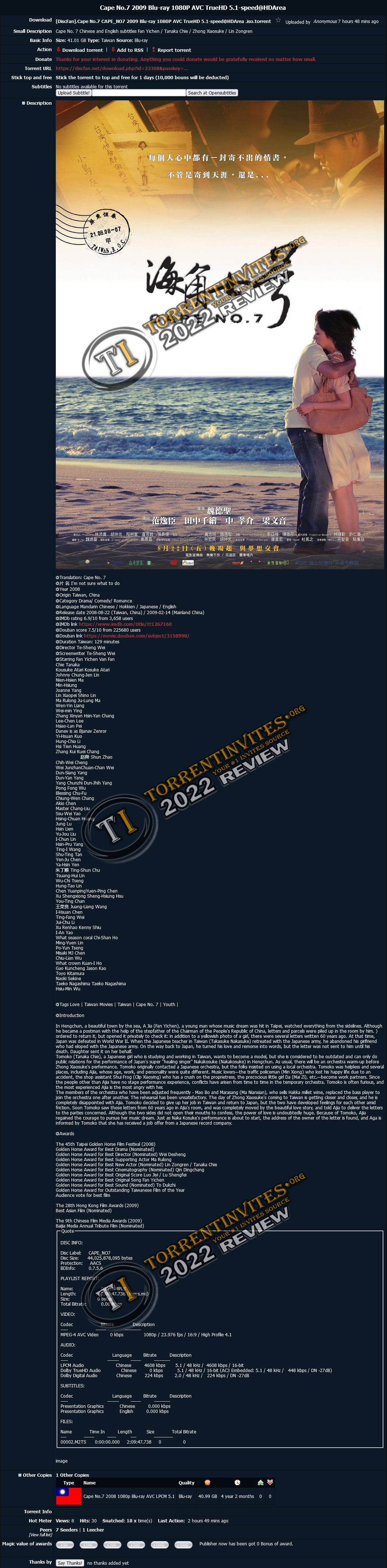 With database of average 6K users & 18K torrents, it contains HD contents of Chinese, Hongkong, Taiwan, Thailand, Japan, SK and others. - You can find contents from other Chinese trackers and encoders there.