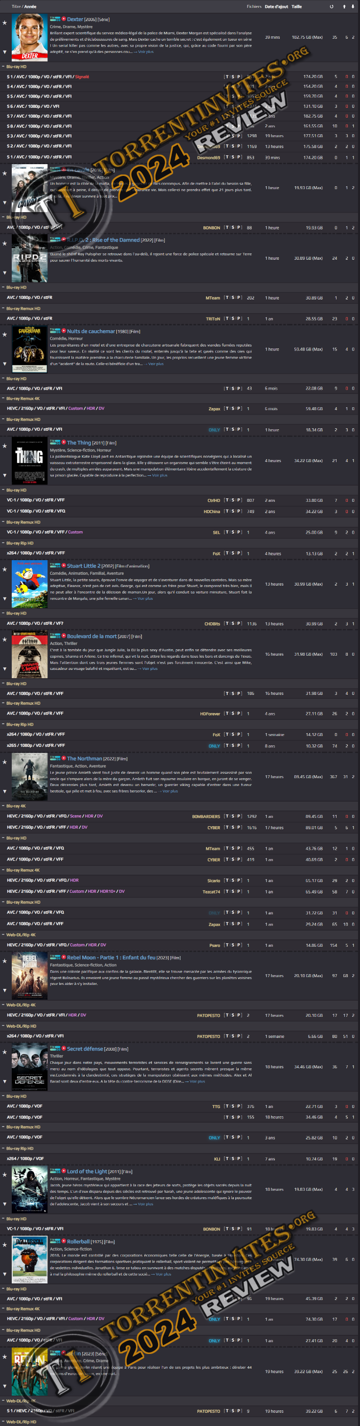 trackers like HDFZ, HDD, OHD and it is written on gazele script, so you won’t have peoblems with navigation. You will find a wide variety of encodes at the best possible quality.