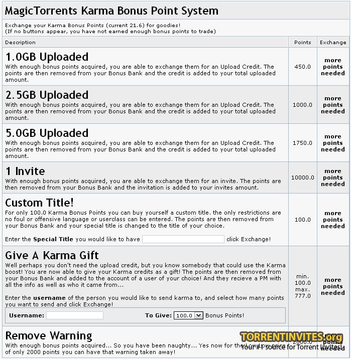 MT Karma Bonus Points System: