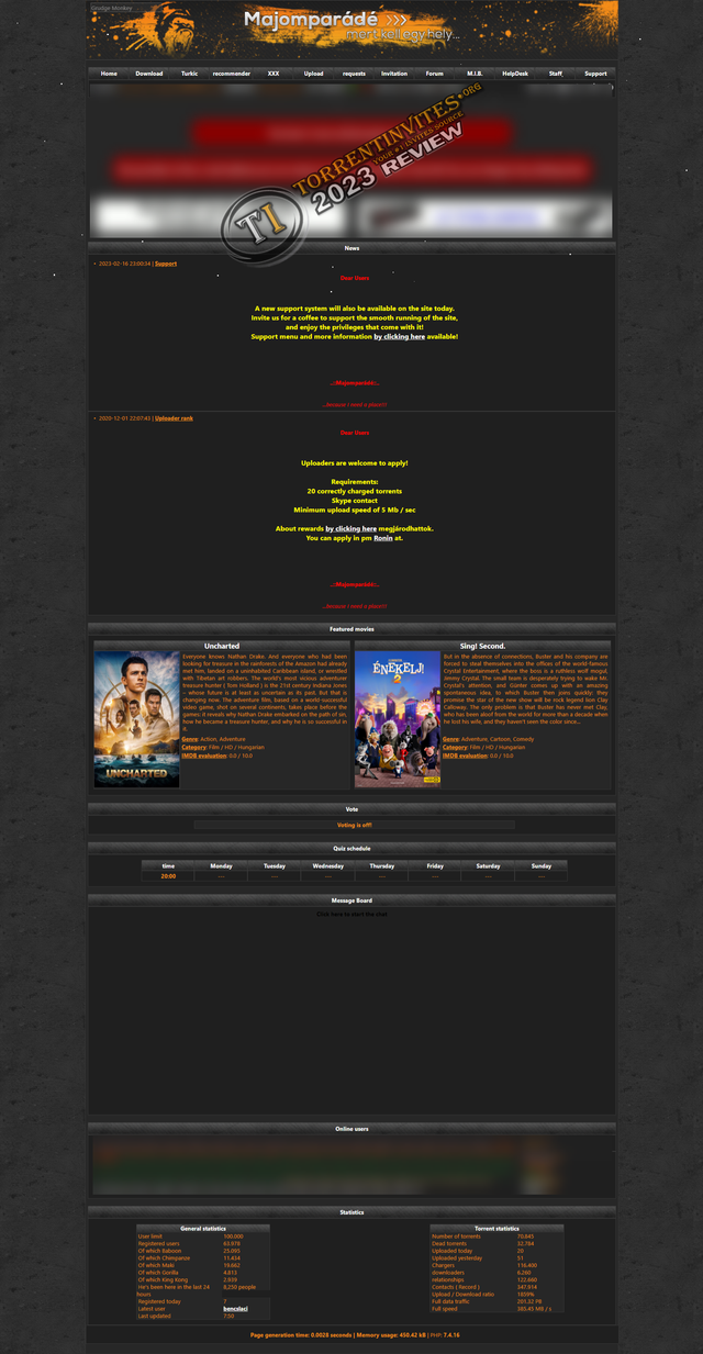 Majomparádé is one of the biggest Hungarian Ratio Free general private trackers that comes after nCore and bitHUmen. The name of the tracker means 'monkey parade' and the rankings are all monkeys like gorilla, baboon, king kong ..etc