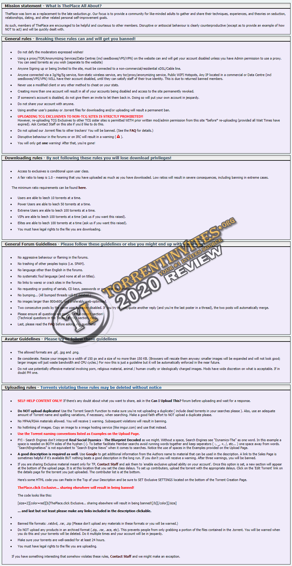Tracker Name ThePlace Tracker URL https://theplace.click/login.php Tracker Genre E-Learning / Seduction Tracker SignUp Invite Only Maintain Ratio Medium Banned Countries None