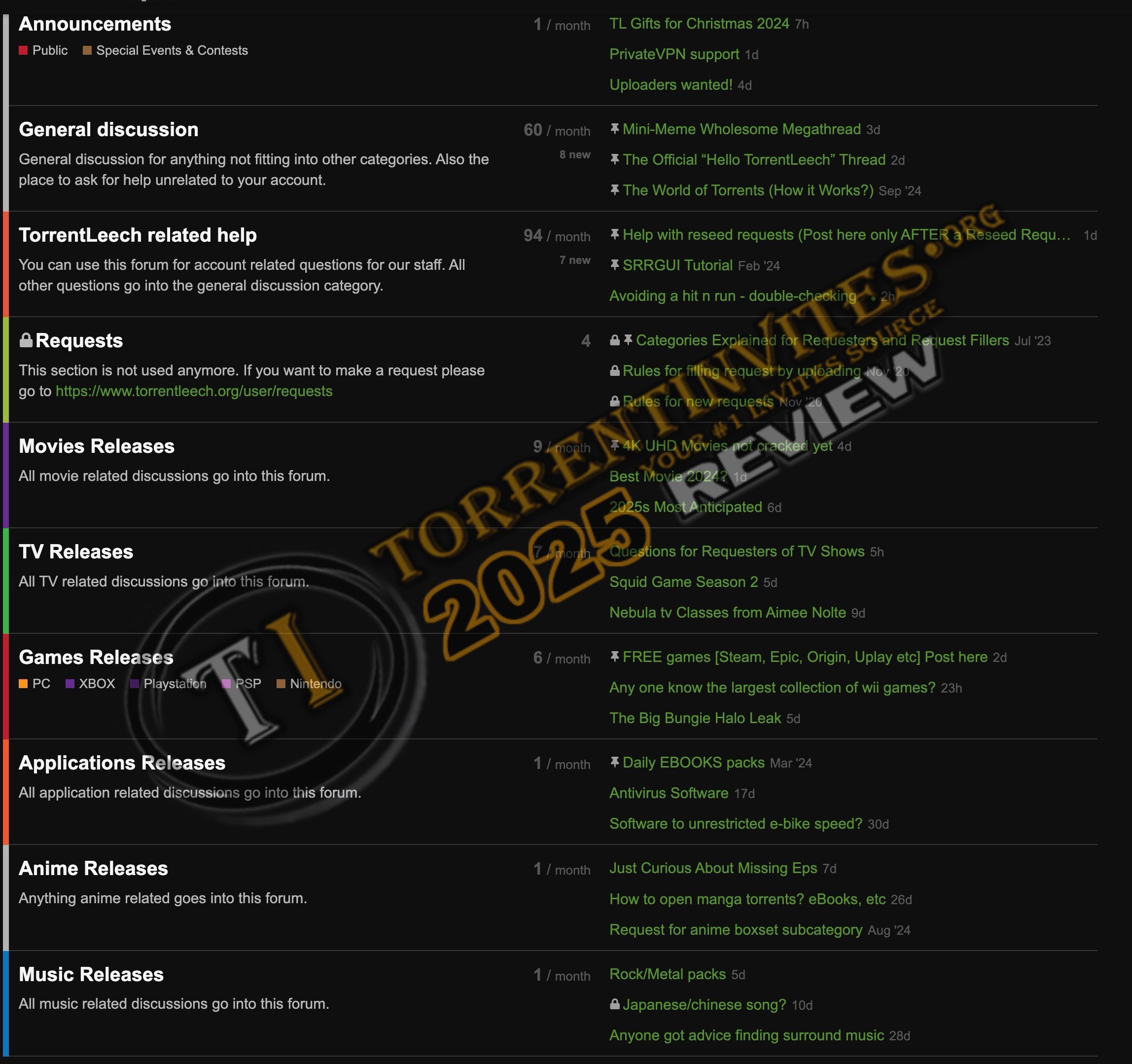 Tracker Name TorrentLeech Tracker URL https://torrentleech.org/ Tracker Genre General Tracker Type Ratio based Tracker Signup Invite only Bonus System Yes Seed Difficulty Easy Tracker IRC irc.torrentleech.org